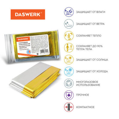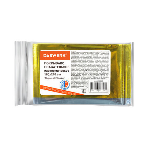 Термоодеяло/покрывало изотермическое DASWERK представляет собой полиэфирную пленку с металлическим напылением.