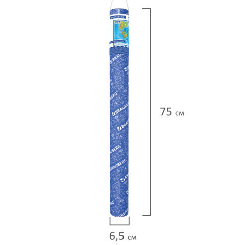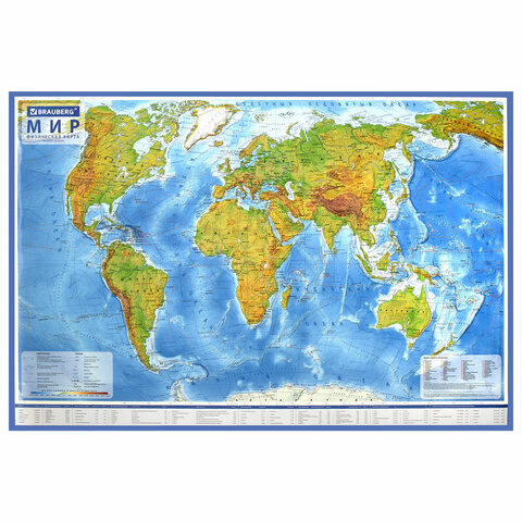 На географической карте мира BRAUBERG отображаются названия континентов, океанов и морей, рек, гор, течений.