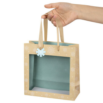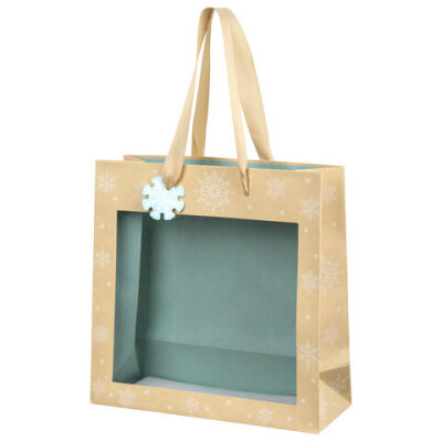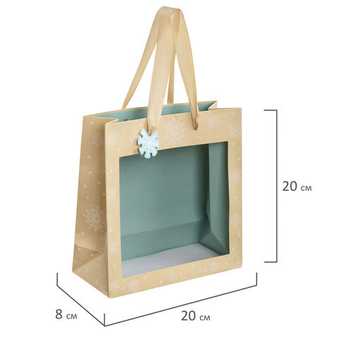 Пакет подарочный (1 шт.) новогодний, 20х8х20 см, "Snowflakes", прозрачное окно, крафт, ЗОЛОТАЯ СКАЗКА, 592444