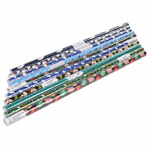 Бумага упаковочная подарочная новогодняя "Snow Fun", 70х100 см, 10 дизайнов ассорти, ЗОЛОТАЯ СКАЗКА, 591911