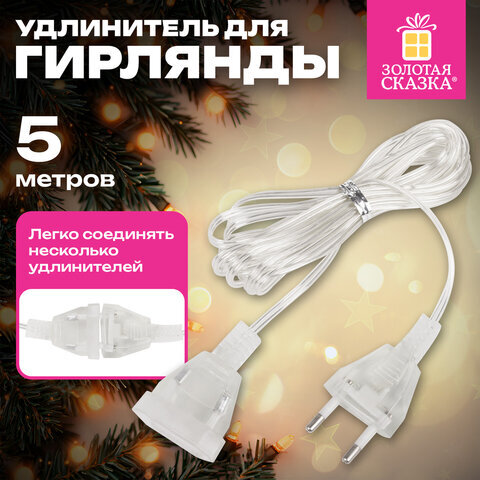 Удлинитель для электрогирлянд ЗОЛОТАЯ СКАЗКА – отличное решение для увеличения длины гирлянды. Удлинитель универсален за счет прозрачного цвета и впишется в любой праздничный интерьер.