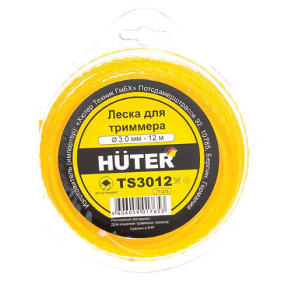 Леска для триммера HUTER TS3012, ВИТОЙ КВАДРАТ, 3 мм, 12 м, 71/2/3