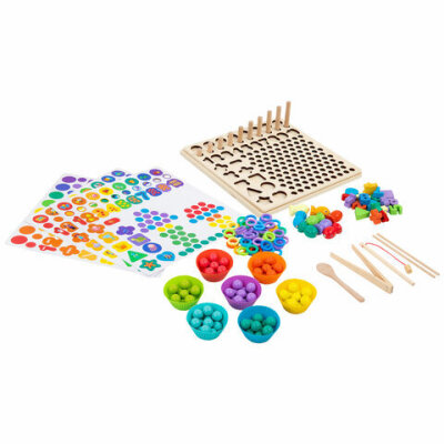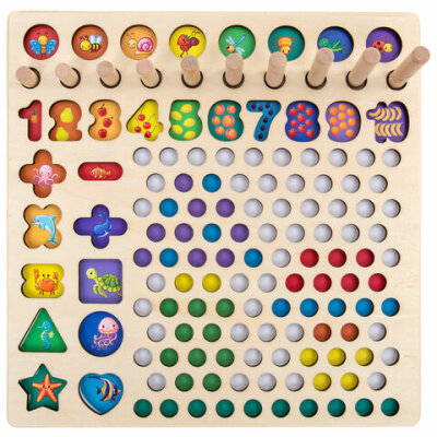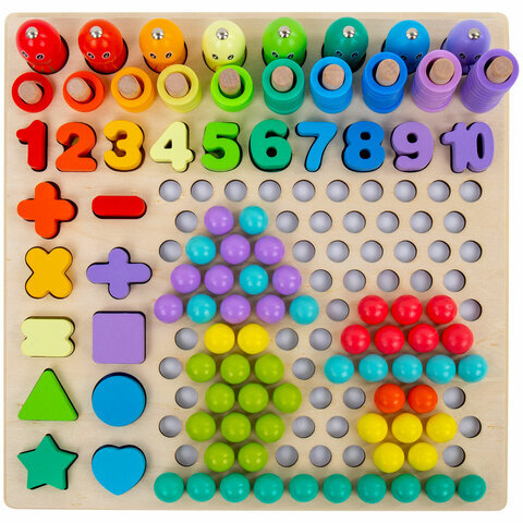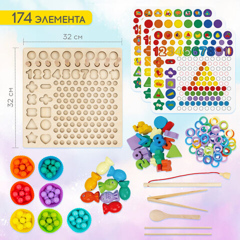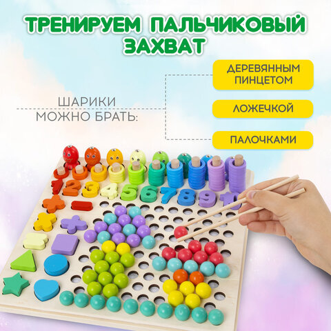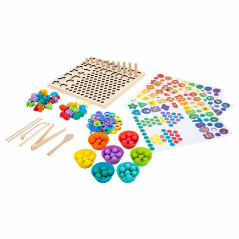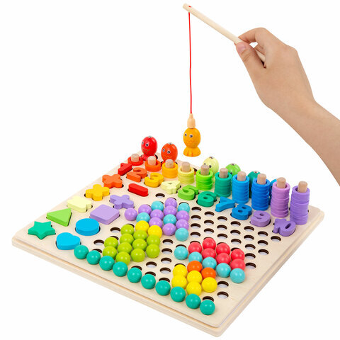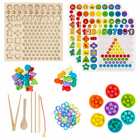 | Комплектация | карточки, магнитная рыбалка, пинцет, пирамидка, фигуры, цифры, шарики |