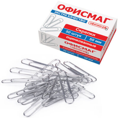 Скрепки большие ЭКСТРА ОФИСМАГ 50 мм оцинкованные 50 штук, 271317