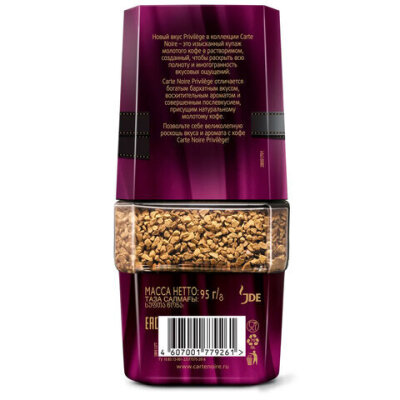 Кофе растворимый CARTE NOIRE "Privilege" 95 г, стеклянная банка, сублимированный, 8051365