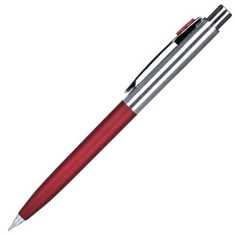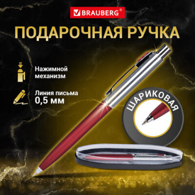 Ручка подарочная шариковая BRAUBERG "Cornetto", СИНЯЯ, корпус серебристый с бордовым, линия письма 0,5 мм, 143492