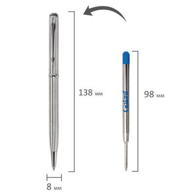 Ручка подарочная шариковая GALANT "Arrow Chrome", корпус серебристый, хромированные детали, пишущий узел 0,7 мм, синяя, 140408