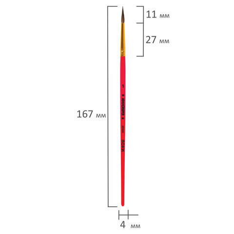 Кисть ПОНИ, круглая, № 1, цветная ручка, ЮНЛАНДИЯ, 201060