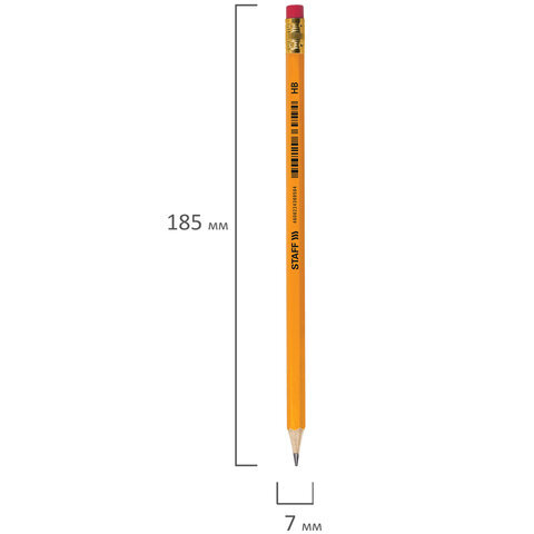 Карандаш чернографитный с ластиком STAFF "EVERYDAY" BLP-YLW, 1 шт., НВ, пластиковый, корпус жёлтый, 181940
