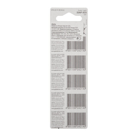 Батарейки GP High Voltage, 23AE, алкалиновая, для сигнализаций, 1 шт., в блистере (отрывной блок), 23AF-2C5