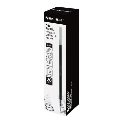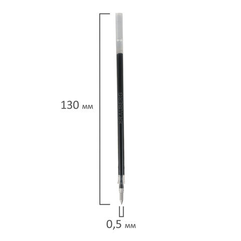 Стержень гелевый BRAUBERG 130 мм, ЧЕРНЫЙ, узел 0,5 мм, линия письма 0,35 мм, 170167