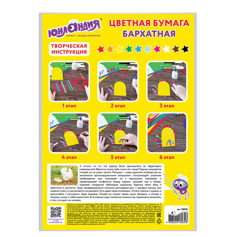 Набор цветной бумаги ЮНЛАНДИЯ, "ЦЫПА" для детей от 3-х лет. Бумага рекомендована для уроков труда и технологии, которые способствуют развитию моторики, фантазии и пространственного мышления.