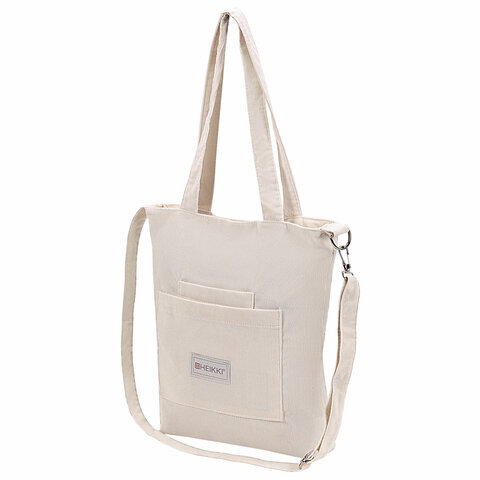 Сумка шоппер HEIKKI VELVET (ХЕЙКИ), вельвет, карманы, 35х32 см, бежевый, 272438