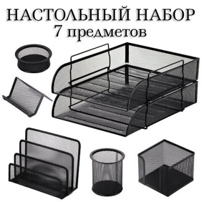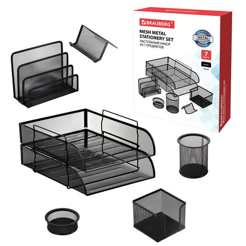 Настольный набор из металла BRAUBERG "Germanium", 7 предметов, черный, 231962