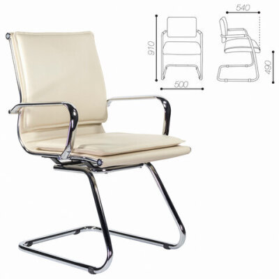 Кресло для приемных и переговорных BRABIX "Kayman CF-102", экокожа, хром, бежевое, 532573