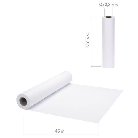 Бумага широкоформатная рулон для плоттера 610 мм х 45 м х втулка 50,8 мм, 80 г/м2, белизна CIE 146%, BRAUBERG, 114181