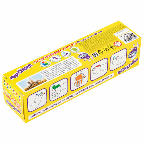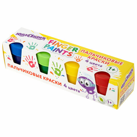 Краски пальчиковые для малышей от 1 года, классические цвета, 4 по 35 мл, ЮНЛАНДИЯ, 192568