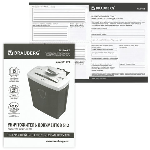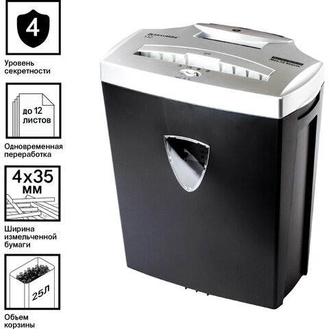 | Возможности уничтожения | бумаги А4 (80 г/м2), дисков CD и DVD, пластиковых карт, скоб |