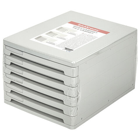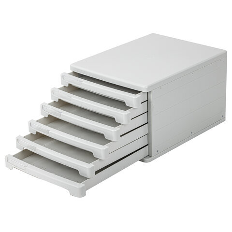 Блок из 6 закрытых лотков для бумаги, настольный, ERICH KRAUSE, А4+, 210х270х365 мм, серый, 63