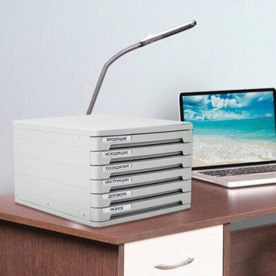 Блок "Erich Krause" из 6 закрытых выдвижных лотков со съемными ярлычками для маркировки, выполнен из высококачественного пластика. Лотки предназначены для хранения бумаг и канцелярских принадлежностей, помогут в сортировке и быстрой подборке информации.