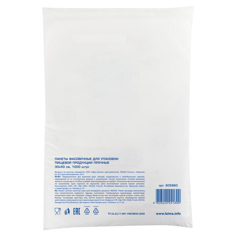 Фасовочные пакеты LAIMA предназначены для упаковки различной продукции, в том числе пищевой. Отлично подходят для овощей, фруктов, зелени. Обладают высокой эластичностью, сохраняют свежесть продуктов, предохраняют содержимое от посторонних запахов.
