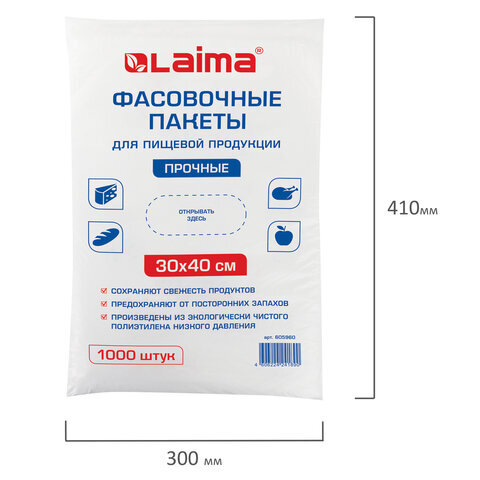 Пакеты фасовочные 30х40 см, КОМПЛЕКТ 1000 шт., ПНД, 10 мкм, ПРОЧНЫЕ, евроупаковка, LAIMA, 605960