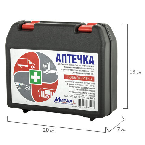 Аптечка первой помощи автомобильная, по приказу № 260н, МИРАЛ, пластиковый кейс, АФПС