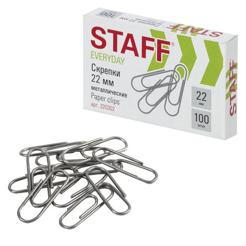 Скрепки STAFF "EVERYDAY", 22 мм, металлические, 100 шт., в картонной коробке, Россия, 220302