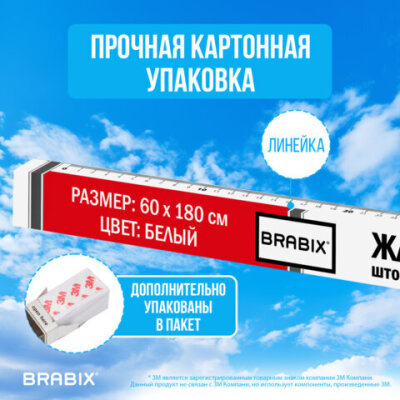 Жалюзи-плиссе, штора бумажная самоклеящаяся BRABIX, 60х180 см, ЭКО, 80 г/м2, цвет белый, 1 шт., 700001