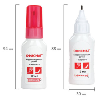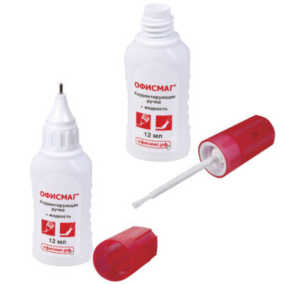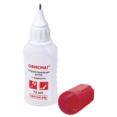 • Корректирующая жидкость на быстровысыхающей основе ОФИСМАГ "2 в 1" позволит быстрее исправить недочеты во время письма.