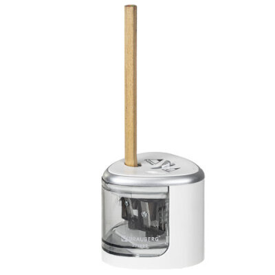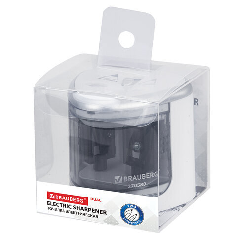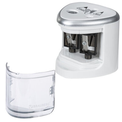 Точилка электрическая BRAUBERG DUAL (для 2 диаметров карандашей!), 4 батарейки АА, белая, 270580
