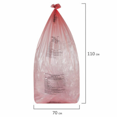 Пакеты для медицинских отходов КОМПЛЕКТ 50 шт., класс В (красные), 120 л, 70х110 см, 16 мкм, Респект