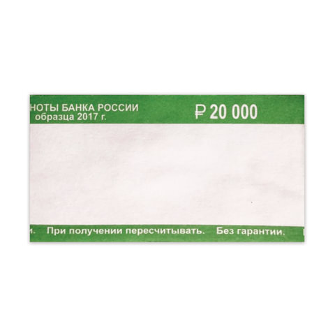 • Банковская упаковка, исполненная в виде склеенной кольцевой поперечной бандероли с нанесением количества банкнот и номинала, а так же другой обязательной информации. Позволяет кассиру быстро, просто и надежно сформировать корешок банкнот (100 листов).