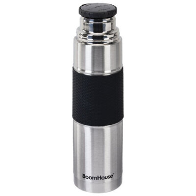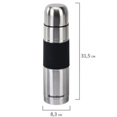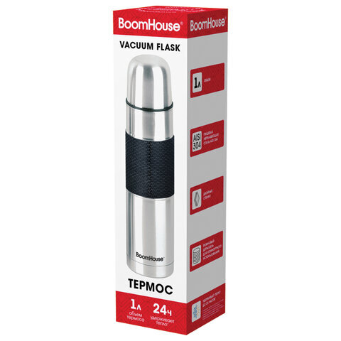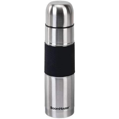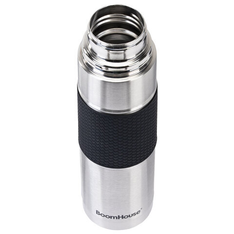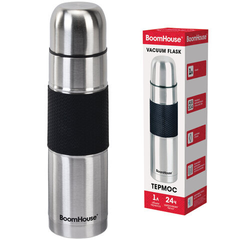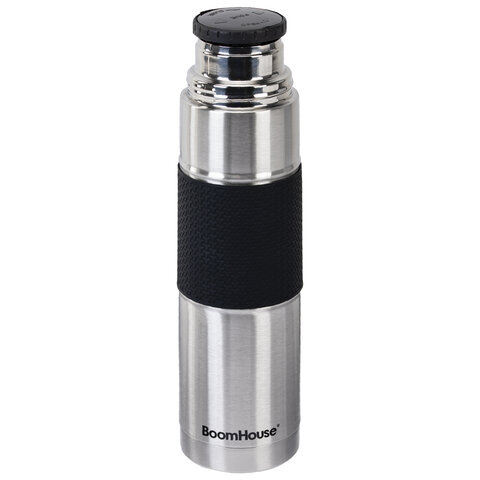 Термос 1 л, BOOMHOUSE (БУМХАУС) CLASSIC, нержавеющая сталь SUS304, черный силиконовый рукав, крышка/кружка, 700308