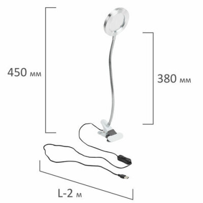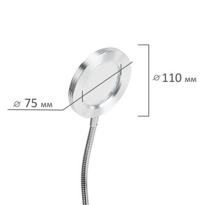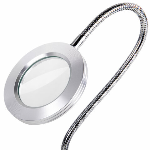 Лупа настольная на прищепке с LED-ПОДСВЕТКОЙ, диаметр 75 мм, увеличение 3, BRAUBERG, 455931