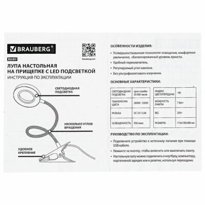 Лупа настольная BRAUBERG с подсветкой предназначена для чтения, просмотра карт, мелких рисунков, шкал, схем, в том числе при отсутствии света или слабом освещении. Усовершенствованная технология освещения, комфортное увеличение.