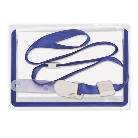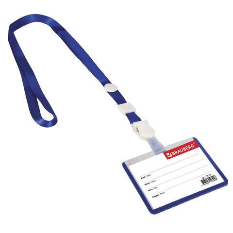 Бейдж школьника горизонтальный (55х90 мм), на ленте со съемным клипом, СИНИЙ, BRAUBERG, 235761