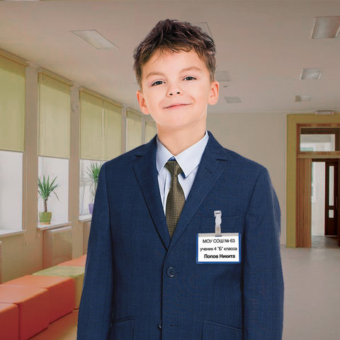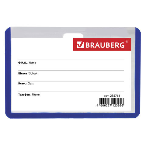 Горизонтальный бейдж школьника BRAUBERG с синей окантовкой используется для идентификации учащегося в образовательных учреждениях.