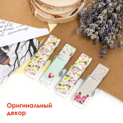 Прищепки декоративные широкие "Шебби-шик", 4 штуки, 7,2 см, ассорти, ОСТРОВ СОКРОВИЩ, 662679