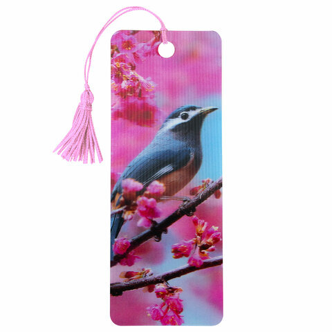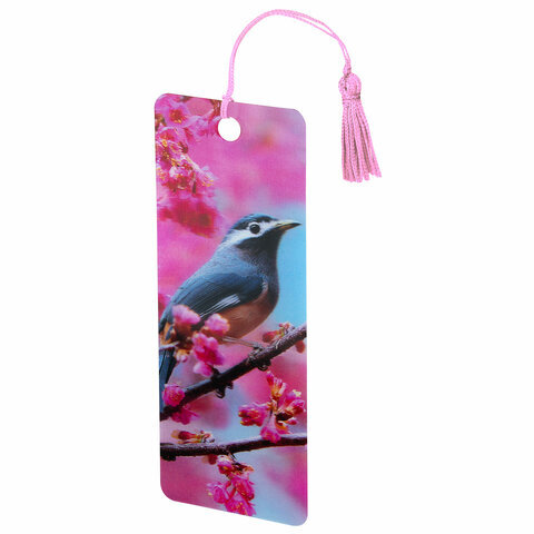 Закладка для книг с линейкой 3D-ОБЪЕМНАЯ BRAUBERG, "Птичка на ветке", с декоративным шнурком, 125773