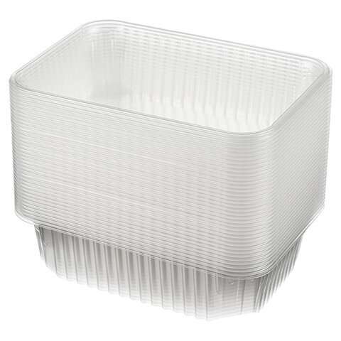 Одноразовый контейнер 750 мл, КОМПЛЕКТ 100 шт., БЕЗ КРЫШКИ, 186х132 мм, прозрачные, ПП, ЮПЛАСТ, ЮУПМ3320
