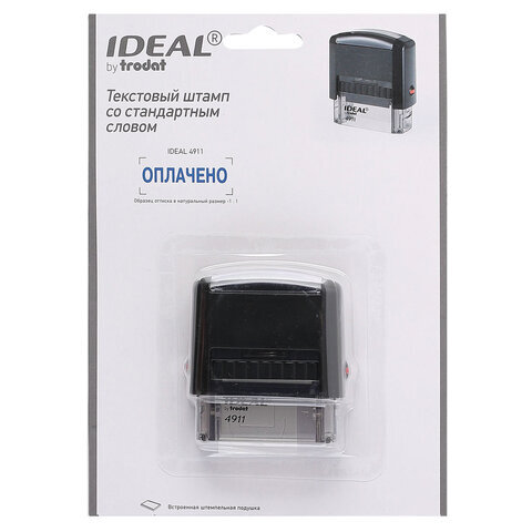 Штамп стандартный "ОПЛАЧЕНО", оттиск 38х14 мм, синий, TRODAT IDEAL 4911 DB-1.2, 161487