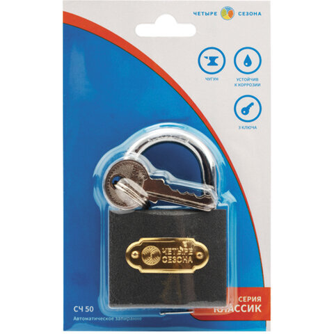 Замок навесной, ширина 50 мм, чугун, дужка d-7,4 мм, английский, 3 ключа, в блистере, 79-0005
