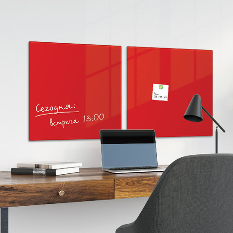 Доска магнитно-маркерная стеклянная 45х45 см, 3 магнита, КРАСНАЯ, BRAUBERG, 236737