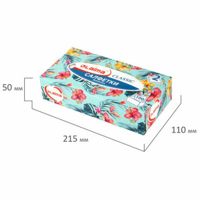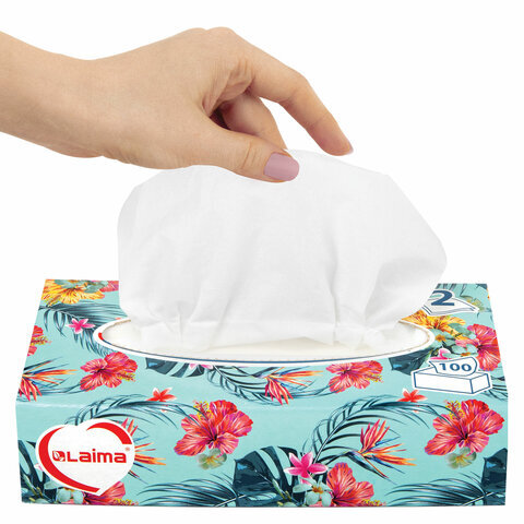 Салфетки в картонном боксе LAIMA практичны в применении. Их можно использовать не только дома, но и в офисе, на работе или взять с собой в дорогу. Предназначены для личной гигиены. В одной пачке 100 двухслойных салфеток белого цвета. Размер: 200 х 200 мм.
