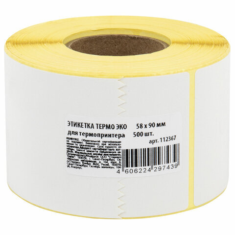 Термоэтикетки ЭКО, 58х90 мм, 500 этикеток в ролике, 112367