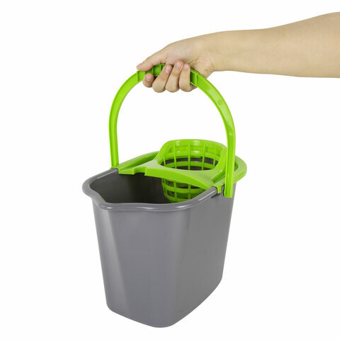 Ведро 10 л для уборки КОМПЛЕКТ с ОТЖИМОМ для веревочных и ленточных МОПов, 24х35х24 см, YORK, 70020