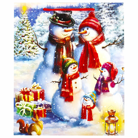 Пакет подарочный (1 штука) новогодний 26x13x32 см, ЗОЛОТАЯ СКАЗКА "Snowman", глиттер, 608232