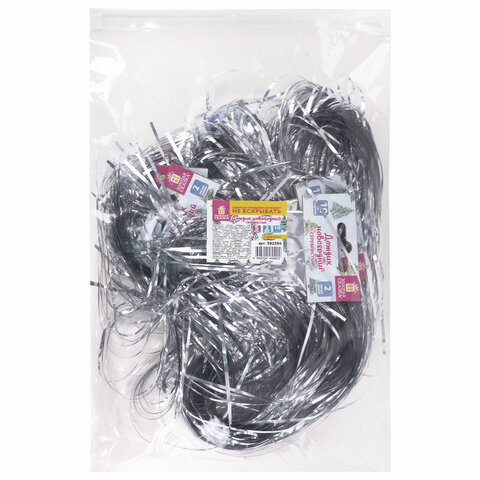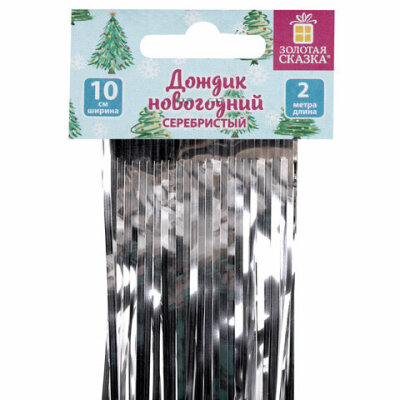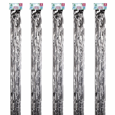Дождик новогодний, КОМПЛЕКТ 5 штук, ширина 10 см, длина 2 м, серебристый, ЗОЛОТАЯ СКАЗКА, 592290