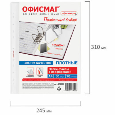 Папки-файлы перфорированные А4 ОФИСМАГ ЭКСТРА, КОМПЛЕКТ 50 шт., гладкие, ПЛОТНЫЕ, 70 мкм, 272683